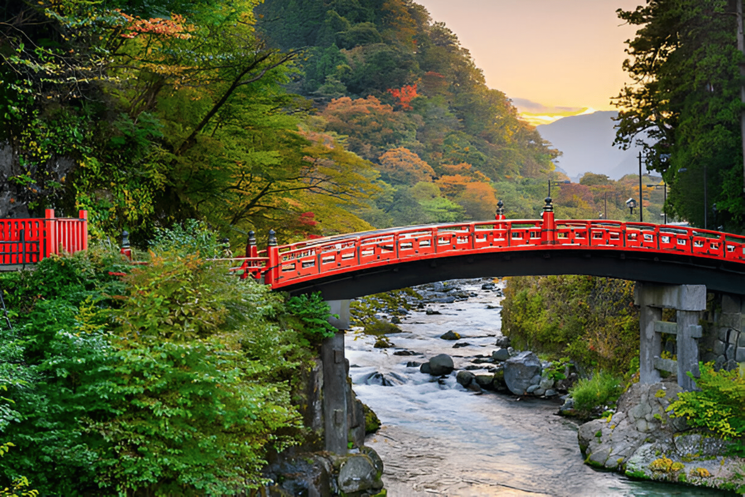 - Morning: Depart Tokyo by private car and arrive in Nikko after a scenic drive. Visit the Shinkyo Bridge and stroll into the shrine precinct to explore Toshogu Shrine, the lavish resting place of Tokugawa Ieyasu. Learn about Edo‑period architecture and admire intricate carvings such as the Three Wise Monkeys and the sleeping cat.